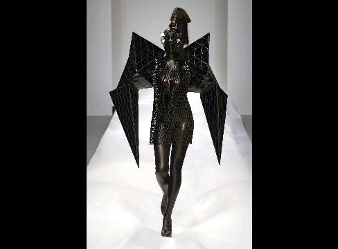 A model wears a design from the Gareth Pugh Spring/Summer 2007 collection during a fashion show on Sept. 18, 2006. The design will be on display during the exhibit "Superheroes: Fashion and Fantasy" at the Metropolitan Museum of Art in New York from May 7 through Sept. 1, 2008. Source: firstVIEW/Metropolitan Museum of Art via Bloomberg News